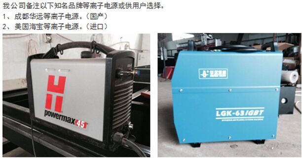 機器橫梁采用臺灣進口雙軸心導軌,并配有防塵罩保護。等離子調高體為鋁合金結構,減少橫梁負載,調高軸為高碳鋼棒,硬度高耐磨。等離子配套接口裝有等離子防撞裝置,對等離子割槍提供安全保護。同時配有等離子切割噴水裝置,在切割時能實時對切割點噴水,起到提高切割效果,減小熱變形的作用。